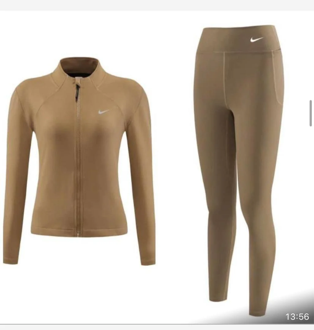 Optez pour le confort et le style avec cet ensemble de sport Nike pour femme. Composé d’une veste zippée à manches longues et d’un legging taille haute, il est idéal pour vos séances d’entraînement ou vos sorties décontractées. Son tissu extensible assure une grande liberté de mouvement, tandis que son design épuré avec le logo Nike apporte une touche élégante et sportive.