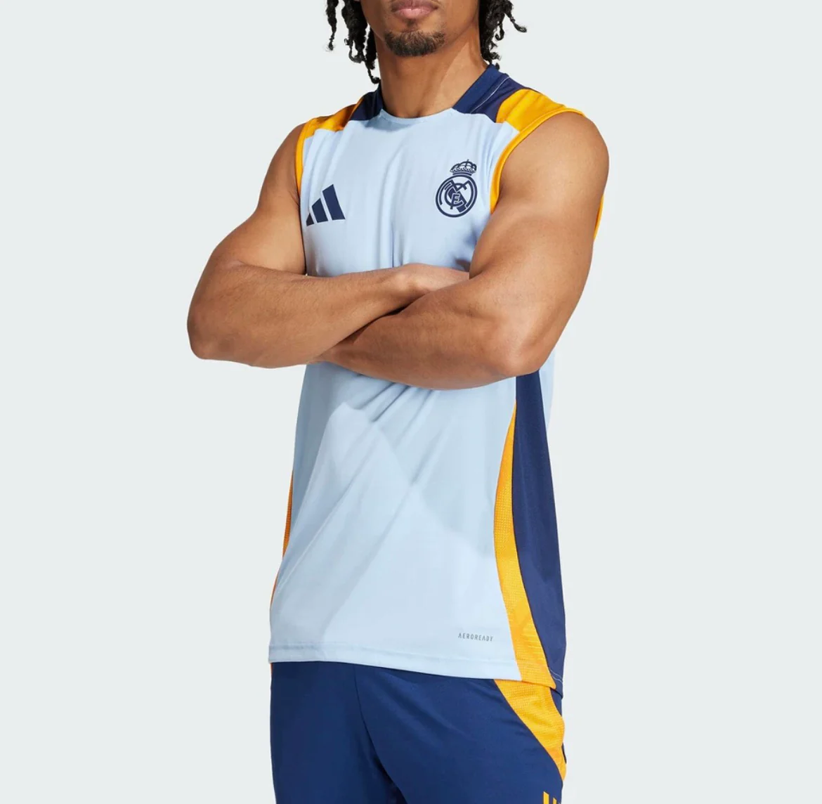 Affichez votre passion pour les Merengues avec ce maillot d’entraînement Real Madrid Adidas. Conçu pour les vrais fans, il associe style sportif et confort absolu. Sa coupe sans manches offre une liberté de mouvement totale, idéale pour les séances de sport, l’entraînement ou les journées chaudes. Le logo officiel du Real Madrid et le design bleu clair, bleu marine et doré ajoutent une touche élégante et moderne à votre tenue.
