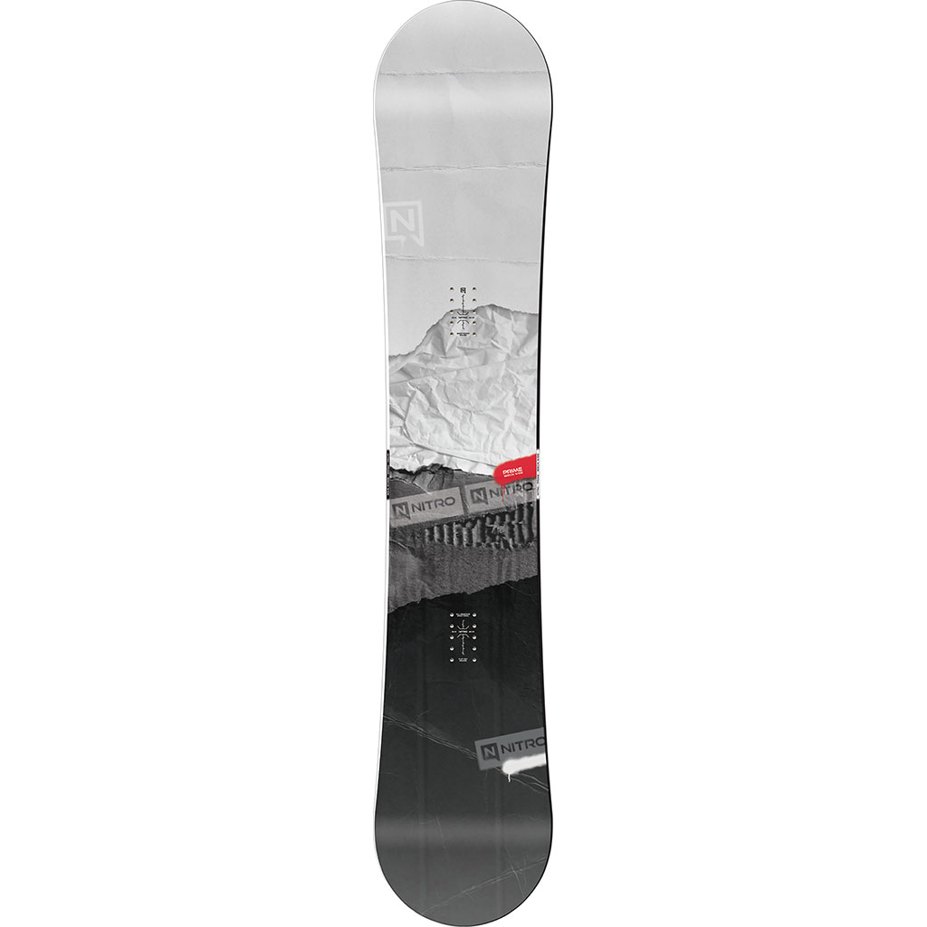Profil hybride où le nose et le tail se soulèvent avant les points de contact traditionnels‚ ce qui permet des virages sans effort et des manœuvres sans accroche. Le nose et le tail liftés procurent un excellent flottement‚ une bonne pressabilité et une grande tolérance sur tous les terrains. C’est le profil de prédilection des riders park‚ freestyle et urbains du monde entier.Mid-Wide Width:Les planches Mid-Wide sont un peu plus larges‚ ce qui réduit la résistance des orteils et du talon‚ augmente la flottaison et donne un peu plus d’assurance lorsque l’on se penche sur ces carves puissants sur les pentes glacées.All-Terrain Flex: C’est le modèle de flex le plus polyvalent‚ combinant le pop caractéristique d’un snowboard Nitro avec une réponse souple‚ vous permettant de déchirer toute la montagne.